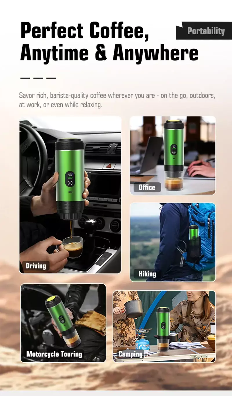 A pausa perfeita está na palma da sua mão com a Cafeteira Portátil 3 em 1 com Display Digital.