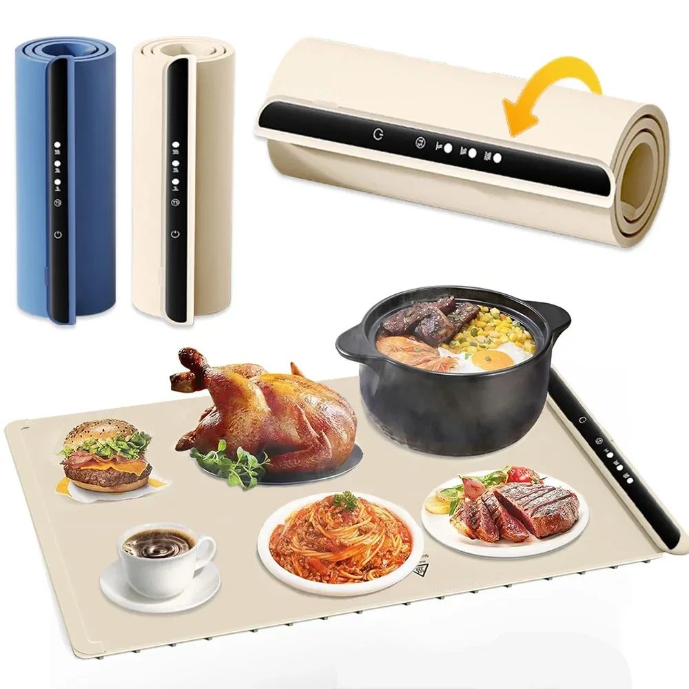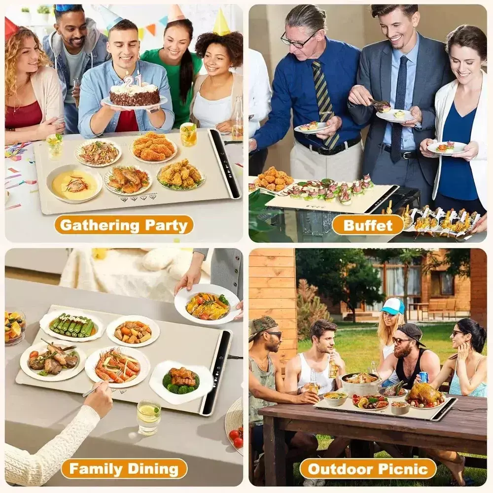 A Bandeja de Aquecimento Elétrico Portátil mantém bebidas e alimentos quentinhos por muito mais tempo — com segurança, eficiência e economia.